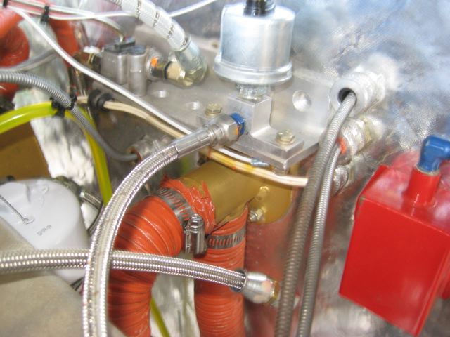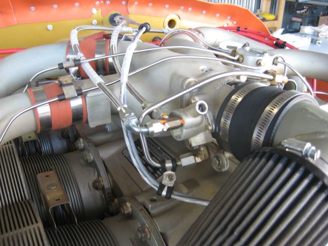Guys: Soliciting any and all input. I have had a fuel pressure anomaly for about 6 weeks now. The engine runs great and I have just over 18 hours of flying in it thus far. Worked off many gripes but, an elusive fuel pressure problem remains. When I reduce the throttle at altitude the fuel pressure rises. This is when I am at cruise, say 9000' at 2400 RPM and 22". I can control the fuel pressure rise with the prop and mixture of course but, if I don't adjust either of those I get a climb in fuel pressure to about 30 PSI. I now have the fuel pressure sender remote and isolated. I have also changed the sensor. Last Saturday, I hooked up a temporary line see photo to the fuel pressure sender and ran controlled air in at 5 psi increments. The pressure gauge I had on the line was even with all my Dynon readings on the panel. Ran it up and down 4 times and allowed it to hold for about 20 minutes on the last one. I am reading unmetered pressure off the test port prior to the manifold now. I thought that it might be pressure induced by altitude? On the ground it works as advertised; reduce throttle and the pressure comes down. I tried 4500', 2500' and 1500' and the pressure would always rise. I am beginning to think I have a return problem either at the bypass or in my plumbing? The lines were installed per the manual though and I am not sure where else to look? At cruise power it flies great and I have had no evidence of the engine running rough. Any thoughts to you with greater knowledge. Many thanks.
