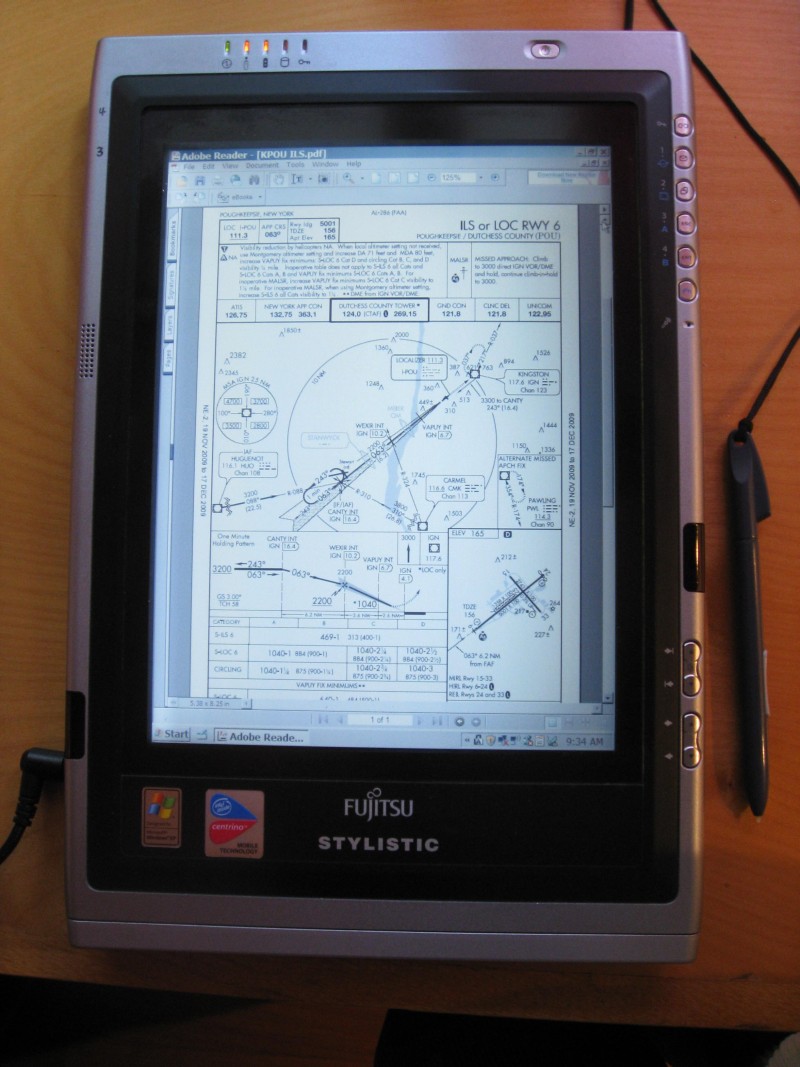 I have a Fujitsu ST5011 Tablet PC I've use for years to view approach plates in the cockpit (JeppView and FlightDeck) and in FBO's and hotels for