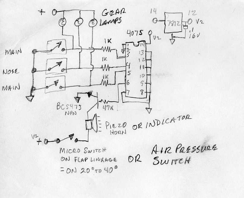 I've never had a close call with the gear in three plus thousand hours of retractable time, but I've always been a little uneasy with no warning system in my LNC2. I had hoped that I could talk Blue Mountain Avionics into building a warning system into their EFIS, but that didn't work out. Randy's system looks great to me and I'm eager to try it. I've attached Randy's drawing just in case others might want to revisit the idea.