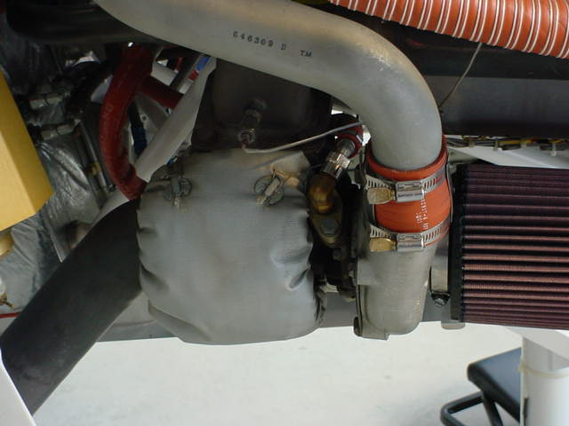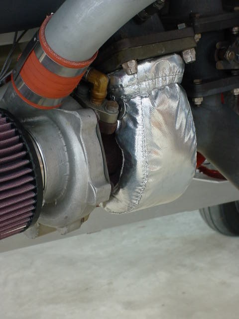 I have read several postings on insulating inside the engine cowling for protection from the hot turbos. Based on marine and commercial experience, we decided to install a "turbo blanket" for heat protection. Photos of installation are attached for your perusal.