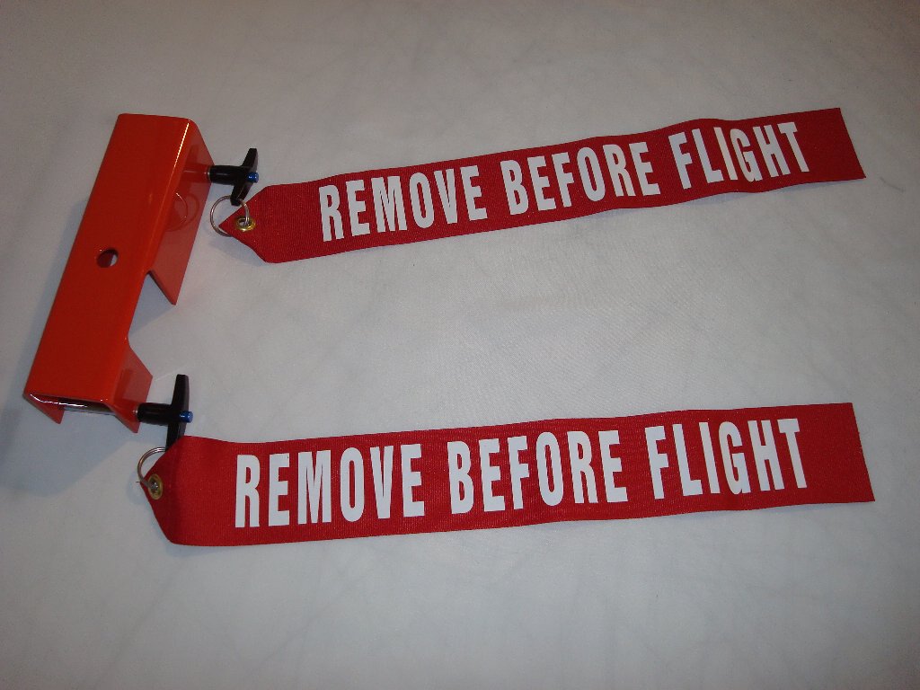it during the pre-flight because of the two bright red 'Remove Before Flight' streamers. Rest assured the nose gear assembly will be