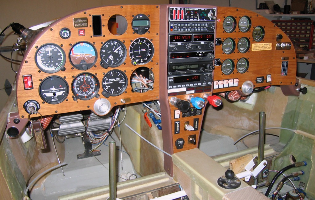 I used the factory-provided fiberglass instrument panel but cut out the inside and used an aluminum "insert". The factory fiberglass blended nicely with the cockpit interior (Lance's training was as a graphic designer and is probably why our airplanes are so pretty) but cutting instrument holes in fiberglass was a real bear. Much easier to use the fiberglass as a shell and screw a flat piece of aluminum onto it to hold the instruments.