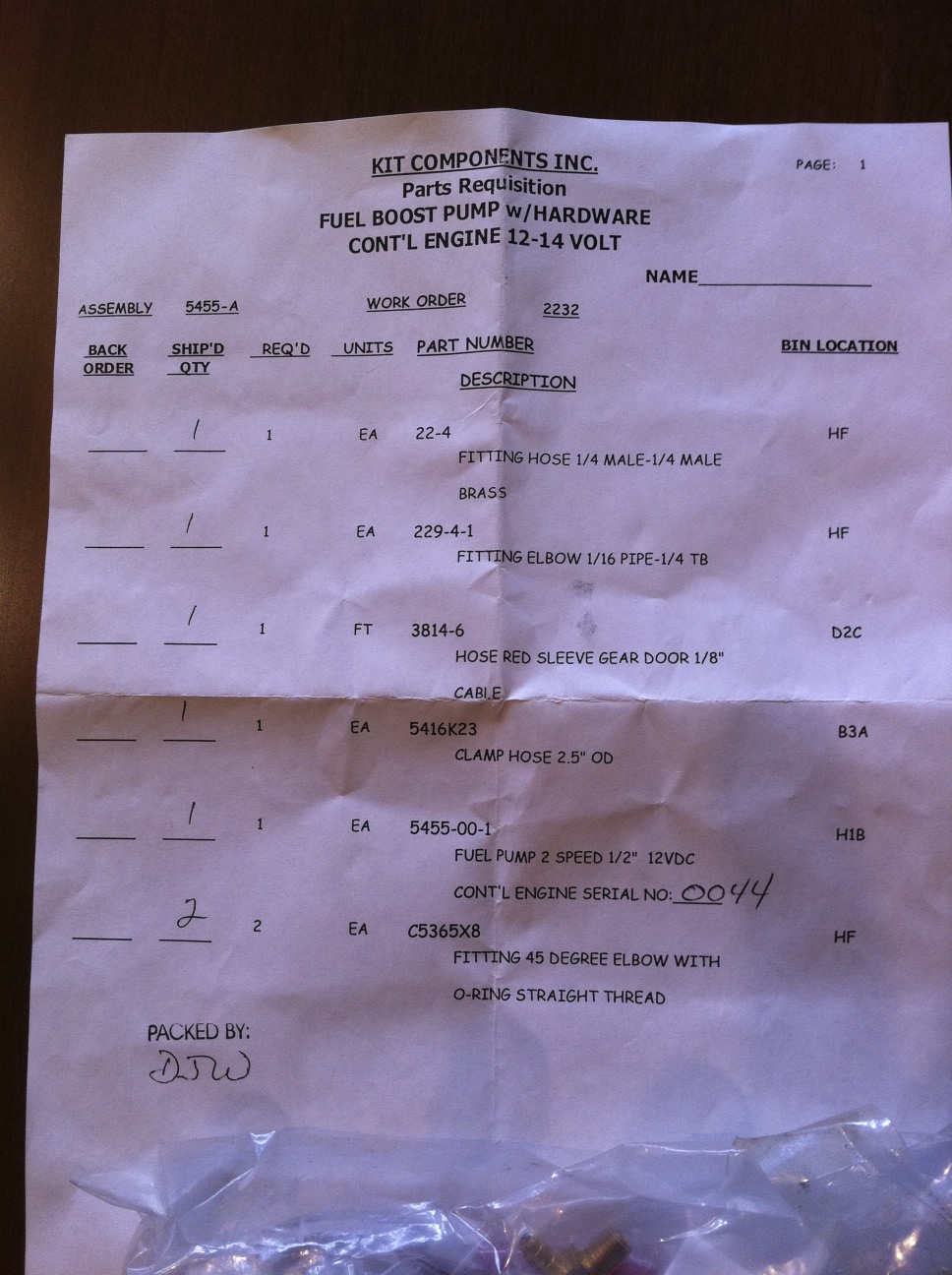 first. All items were bought from Lancair for an IO-550 Legacy 2000