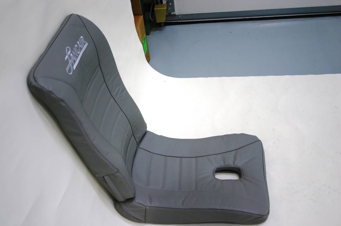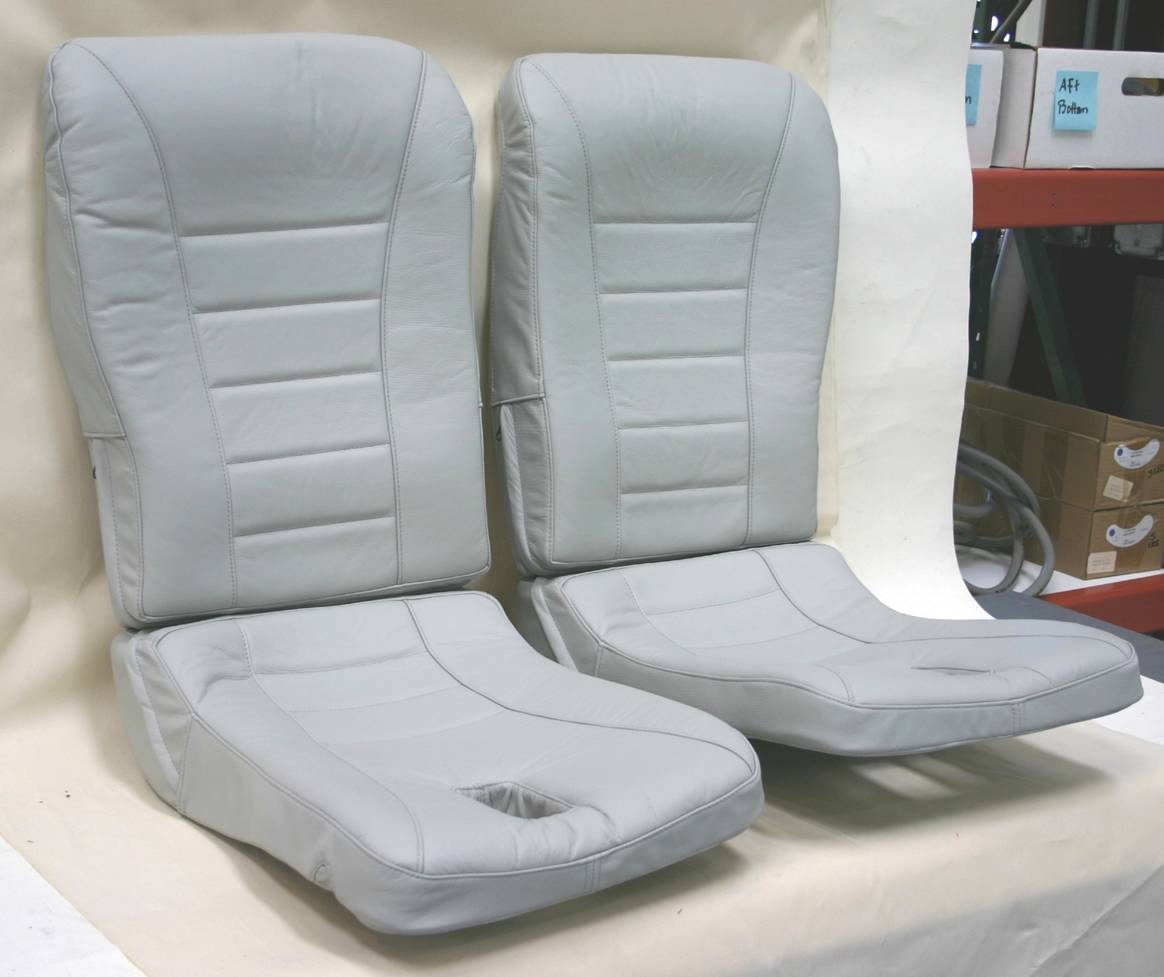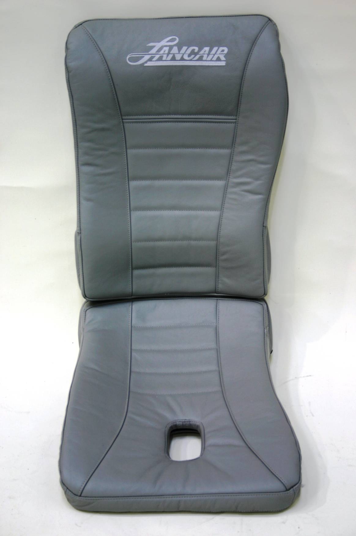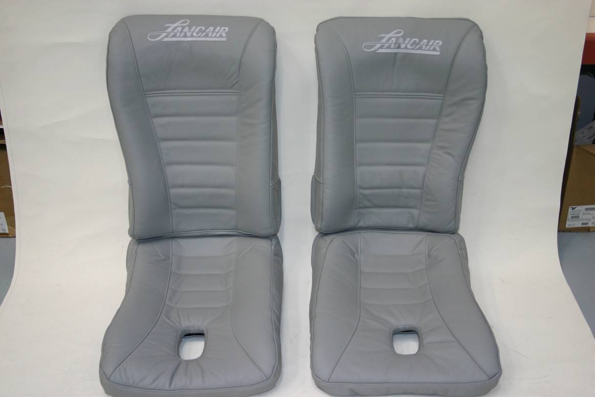 I attached some pictures of our 320/360 cushions upholstered in Gray leather with and without the Lancair logo.