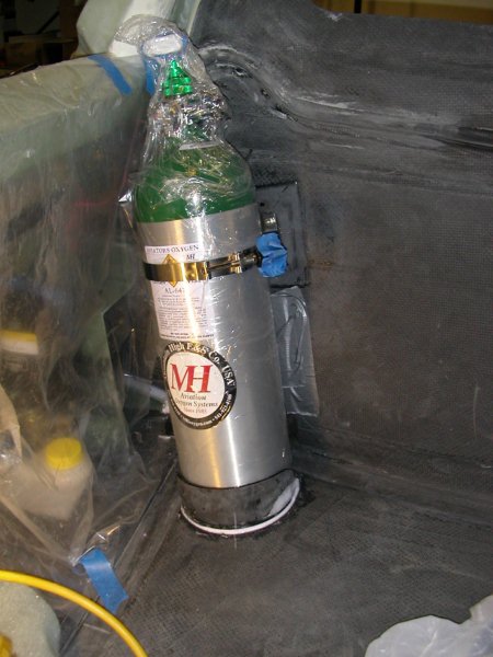 A photo of the installation is attached.  As you might be able to see under all that protective plastic wrap, I bonded mounts for the stainless steel strap that keeps the bottle tight against the fuselage.  I made a "cup holder" bonded to the fuselage floor that keeps the base of the bottle from sliding around.  The stainless strap keeps it from lifting up and so long as the base of the bottle is in the cup holder, the bottle can't move.  In almost 500 hours of flight, I haven't had any problems with it.