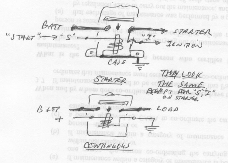 How do I know this? I replaced the el cheapo starter contactor on my Lancair IV hydraulic pump with a continuous Cole Hersee contactor rated at 85 amps, and I got fooled by the wiring change. No instructions in the box. Had to put an ohm meter on the two different contactors to figure it out. Duh. And to think I once knew the difference long, long ago. It all slowly came back as I tried to figure it out with the ohm meter. The mind is going, going, going.....