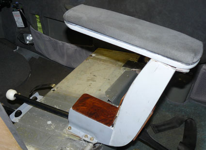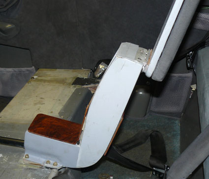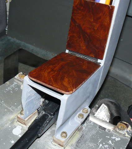It is made of 1/4 inch fiberglass/core stuck together in the conventional way with flanges on the bottom to tie it down. The armrest itself is on aluminum piano hinge. If you push down hard, you can break it off. (Been there, done that in severe turbulence, reinforced with more carbon uni top and bottom.)