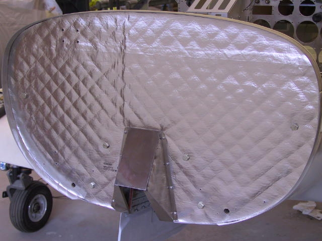 Steel protects the plywood from direct flame. The fiberfrax protects the plywood and it’s reinforcing fiberglass from heat. The quilted blanket can do both. Lighter, easier, and it looks better. (Strictly speaking, the steel/fiberfrax, or the blanket, is the “firewall”. The plywood bulkhead that we call the firewall, well, that’s not the right term for it, but we all use it. Its proper name is probably "forward fuselage bulkhead", but you have my permission to "whap me upside the haid" if I ever call it that.)