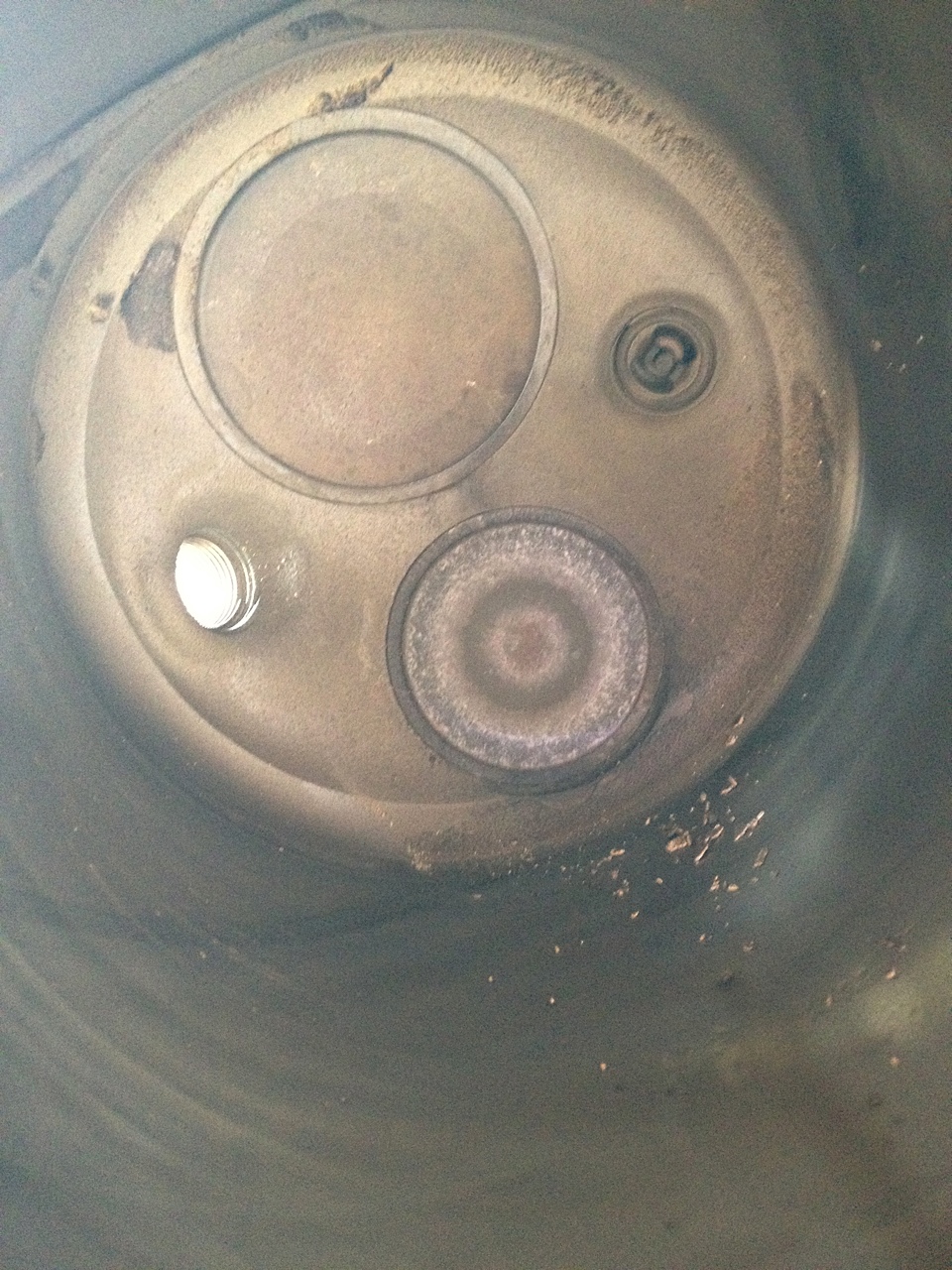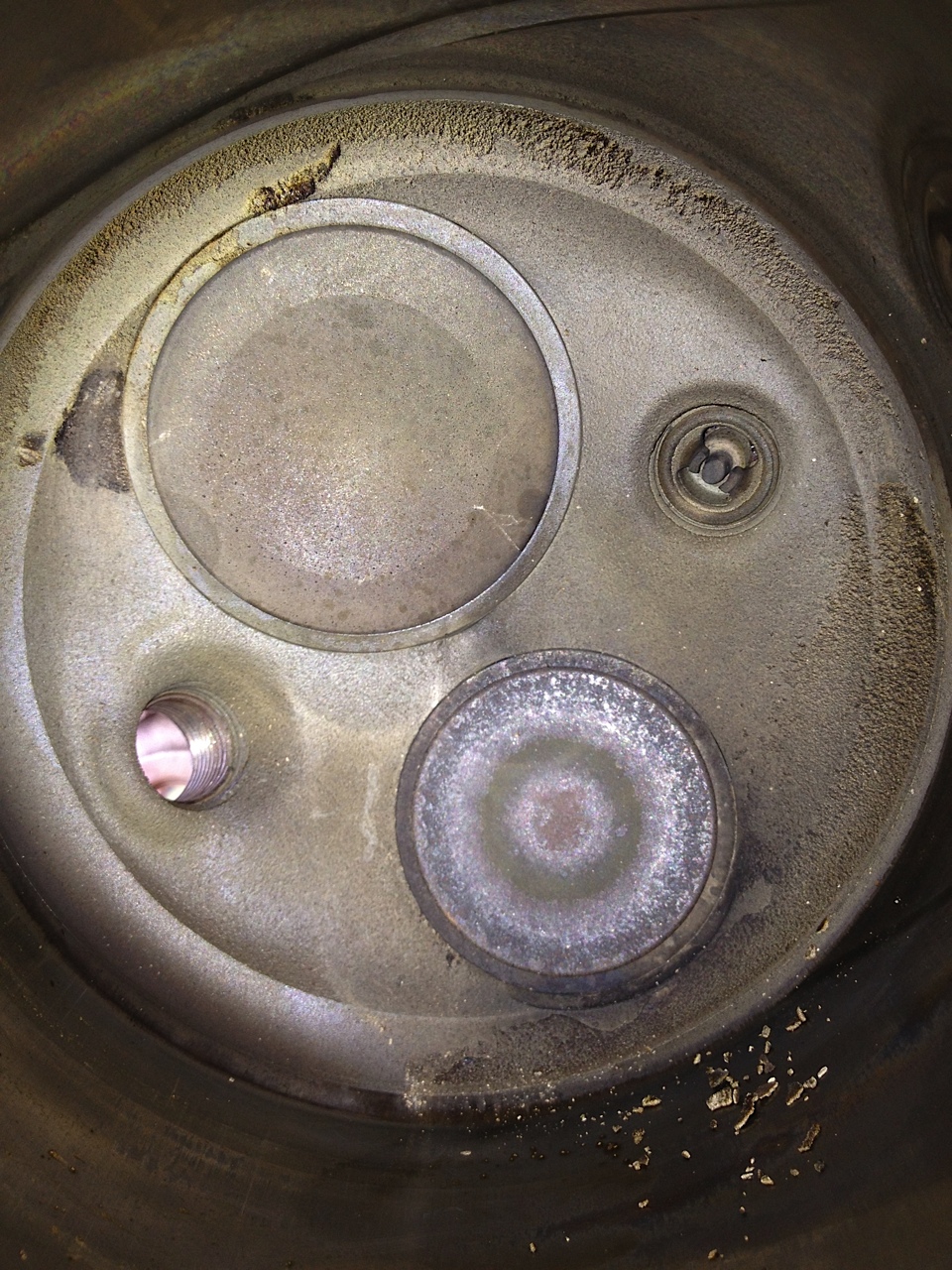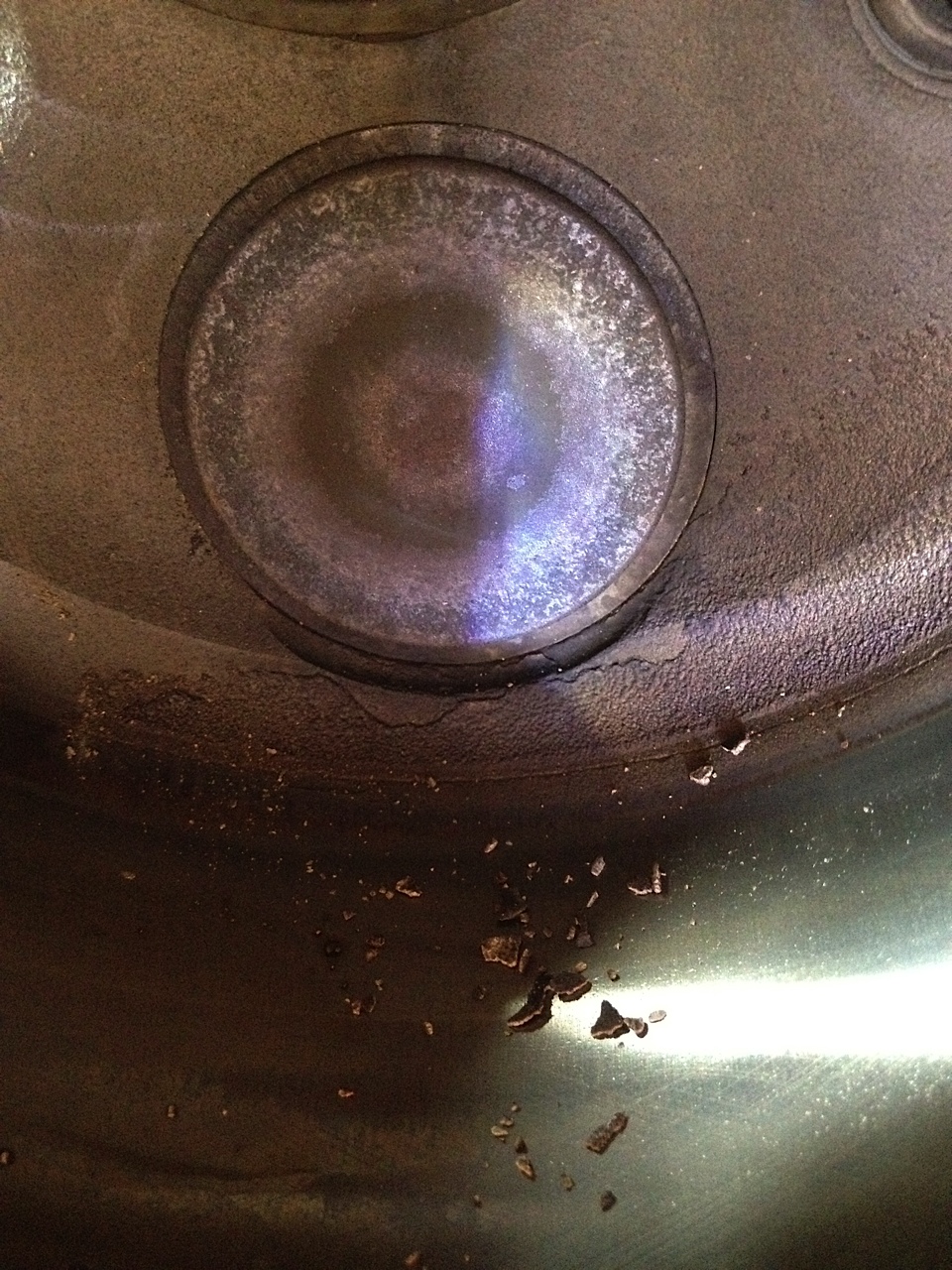 ps Pict 3 showed some of the stuff that we were able to scrape off, and in the upper left corner you see the hot spots, they are colored but the 'skin' feels the same, so it looks like material was coming off or burned in, but it is not, it is the deposit on top.