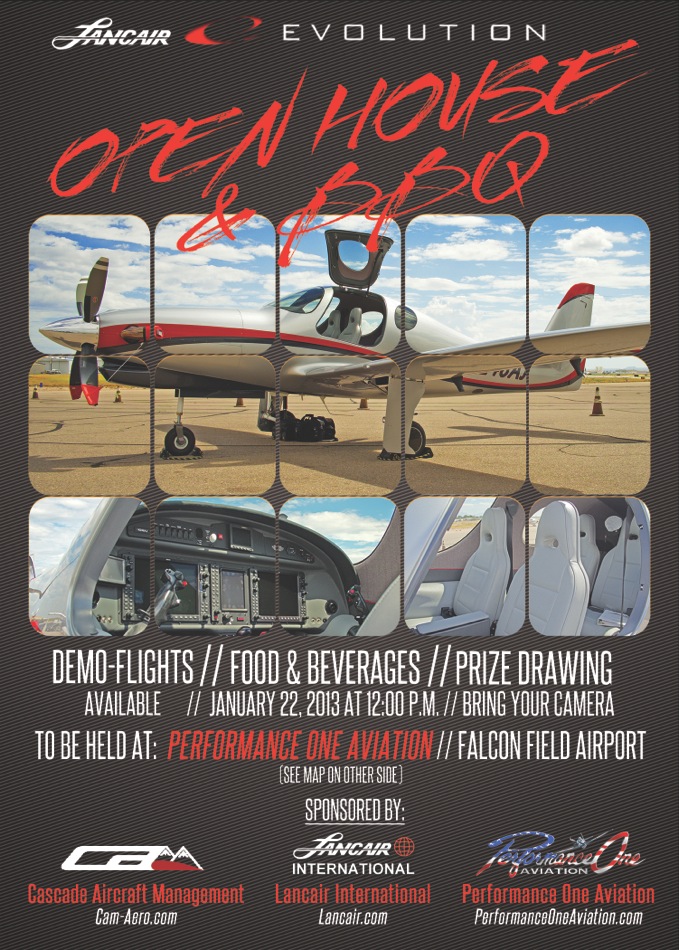 You are cordially invited to attend our Lancair Evolution Barbecue & Open House to be held on