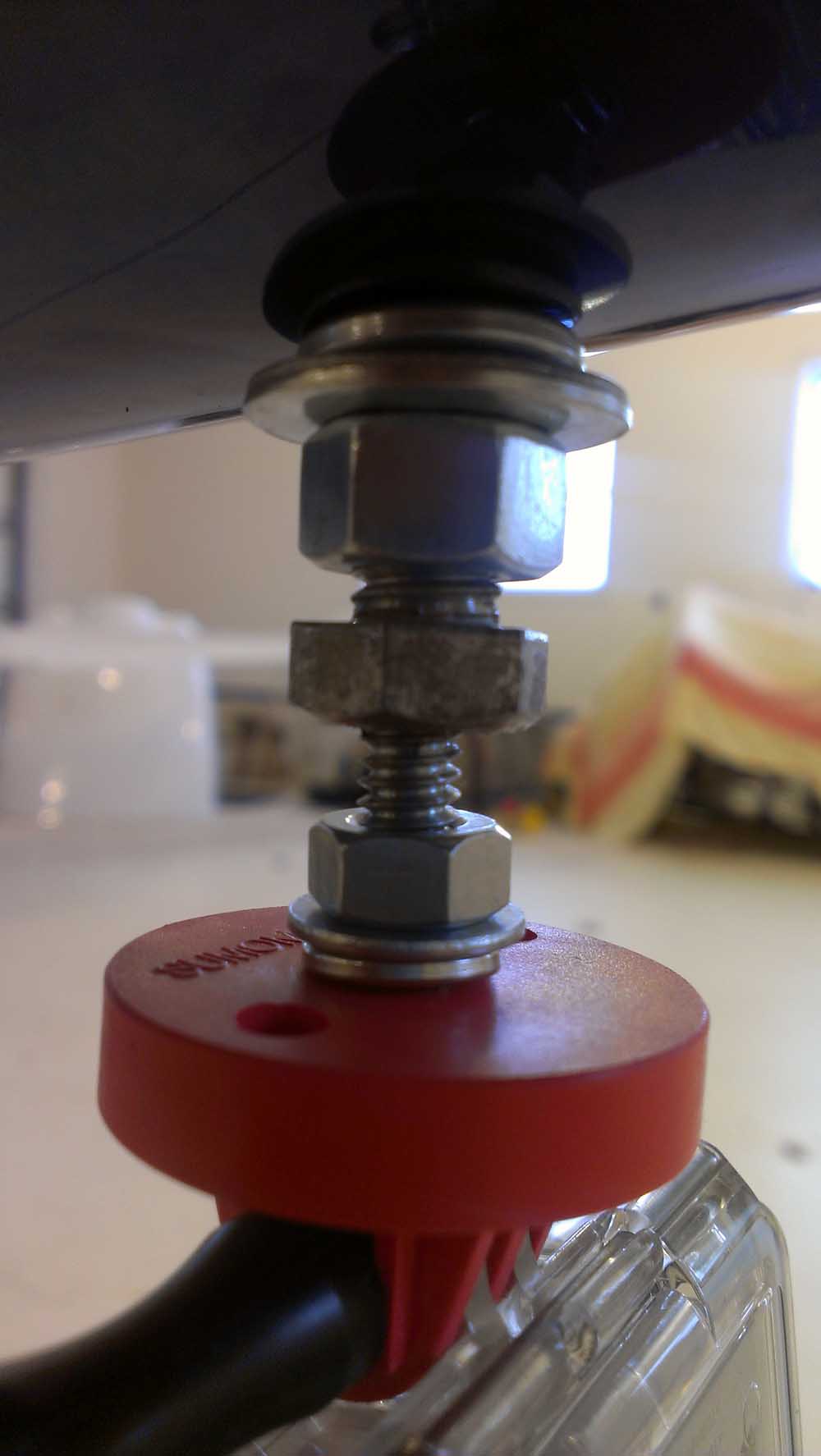 This is what I ended up doing. I got a 3/8" bolt about 2" long (this fits into the tie down hole in IV -- perhaps the other lancairs are similar in design) and an 1/4" bolt (which is a standard size for many camera mounts). The end was cut off the 1/4" bolt. I tapped the 3/8" bolt and inserted the 1/4" bolt into its head. Thats pretty much it... a couple lock washer and flat washers rounded up the parts... cost was a couple bucks.