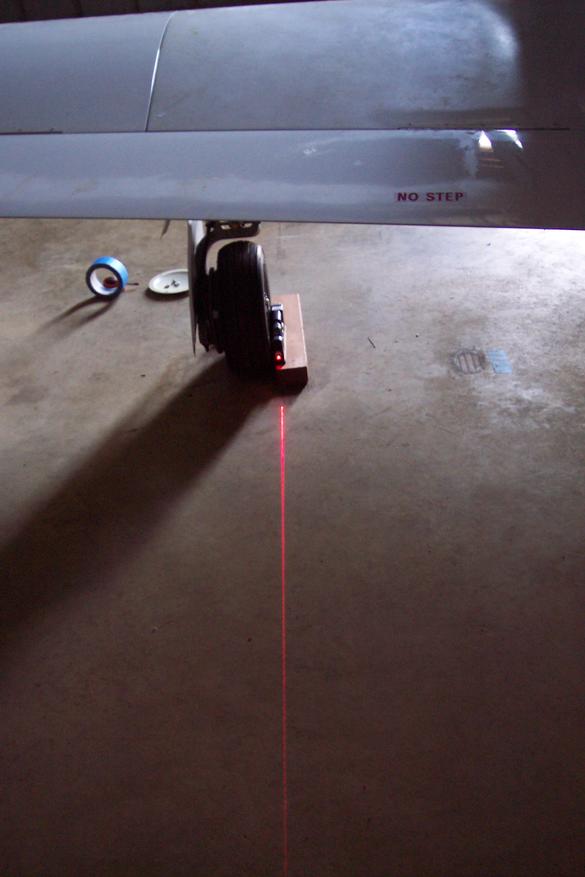 made a mark on a piece of blue tape stuck to the hangar floor on