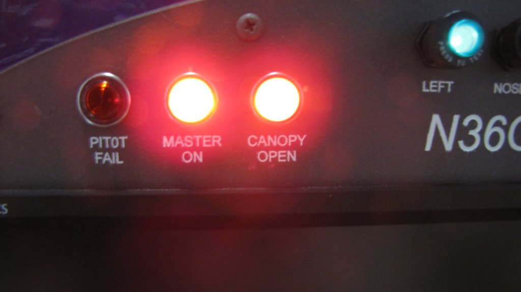 warning light tucked under >the glare shield, that is illuminated anytime the canopy is not down and over >center locked, if installed