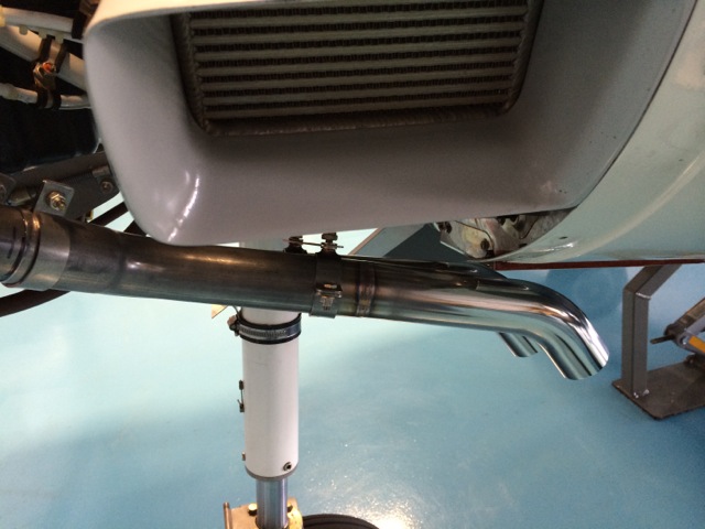 The two clamps seen in this pic lock the tailpipes together with a cross brace which is then secured directly to the the rear of the engine.