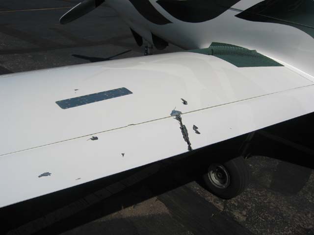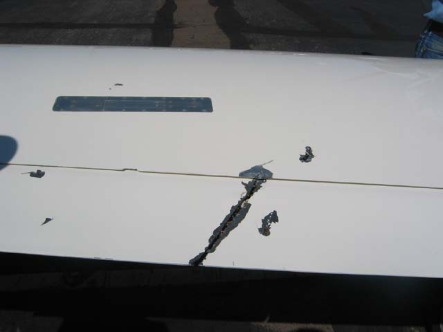 Photos from our window blowout are attached. Probably the scariest part, from the passenger point of view (having taken ground school classes was enough to know your flaps are important) was looking out the window and seeing the flap sliced clean through (notice you can see sky). The window, or parts of it, skipped across the wing (missing the fuel tank by inches) and you can see the flap damage. The door pic is what was left of the window upon landing. Nothing came out of the cockpit in the swirling 280 mile per hour wind (we immediately slowed). No flap landings in a IVP is fun! Good thing we have speed brakes.